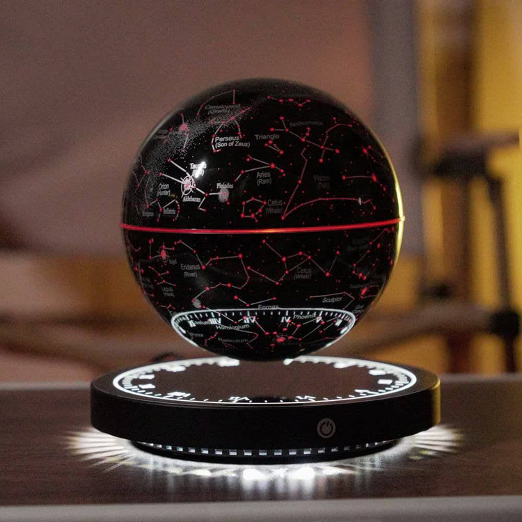 کره معلق با طرح صورتهای فلکی با طراحی مدرن و نور LED رنگی، بهصورت جادویی در هوا شناور میماند و ۳۶۰ درجه میچرخد. با لمس لامپ در حالت معلق، رنگ نور بین قرمز، سبز، آبی و بنفش تغییر میکند. مناسب برای دکور دفتر، اتاق خواب یا هدیهای خاص و متفاوت؛ ترکیبی از تکنولوژی، زیبایی و حس رمانتیک